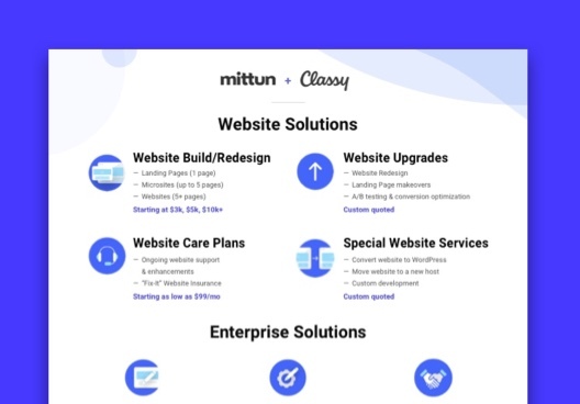 Mittun + Classy Pricing Cheat Sheet